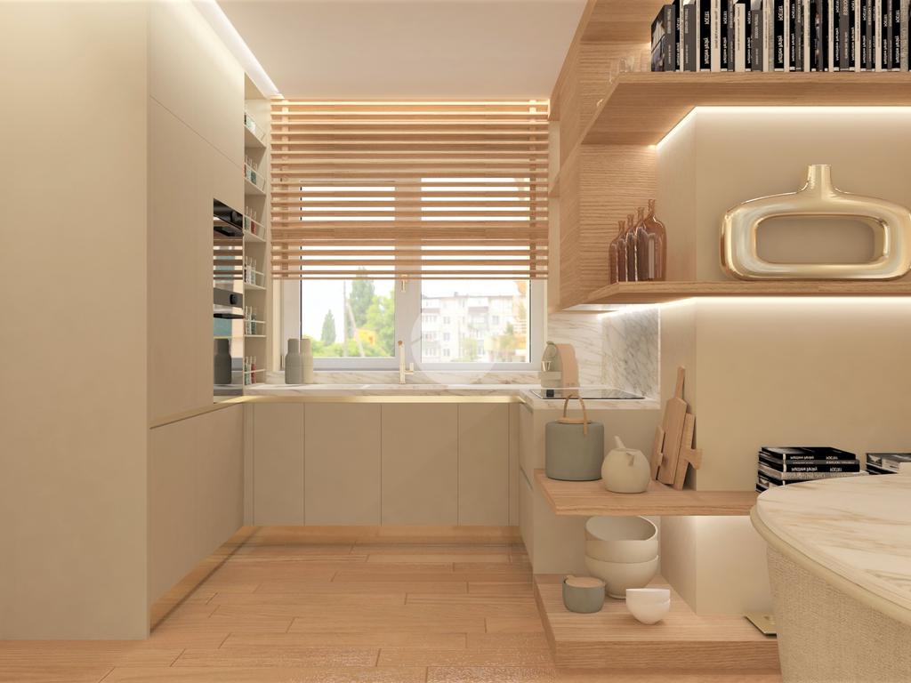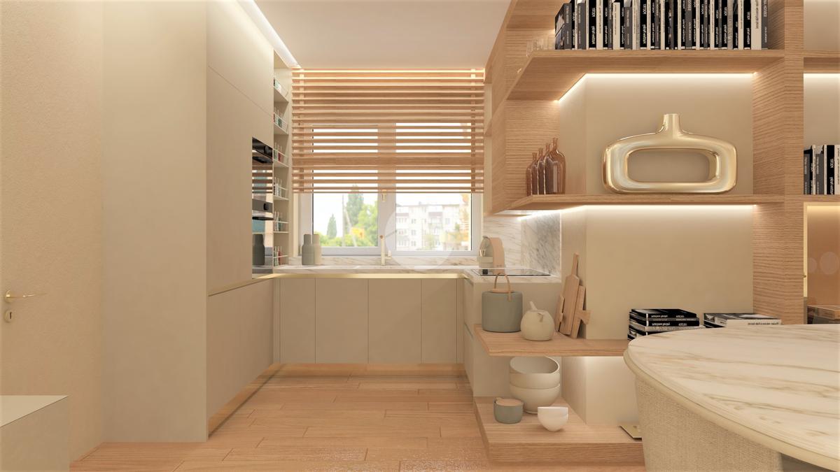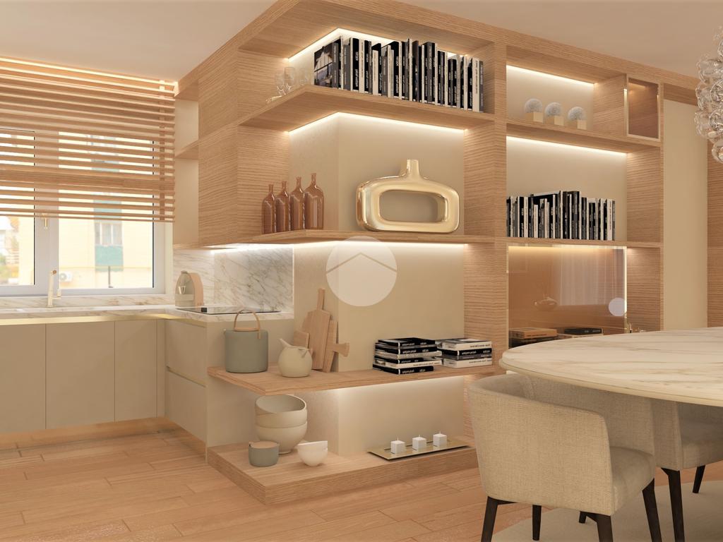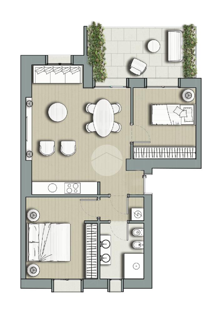 L' appartamento è luminoso con doppia esposizione sulla tranquilla corte interna, spazi ottimizzati e composti da un luminoso soggiorno con cucina a vista, grande terrazzo abitabile, camera da letto matrimoniale, camera da letto e un bagno con box doccia. Trasformabile anche in ampio Bilocale. I pavimenti dei vari ambienti sono realizzati in parquet Listone Prefinitoin Rovere mentre quelli dei bagni rivestiti in grès porcellanato Marazzi. Completa l' appartamento un sistema di demotica smart per rendere la vita quotidiana più confortevole.