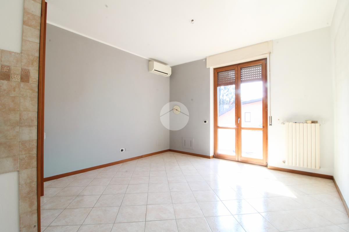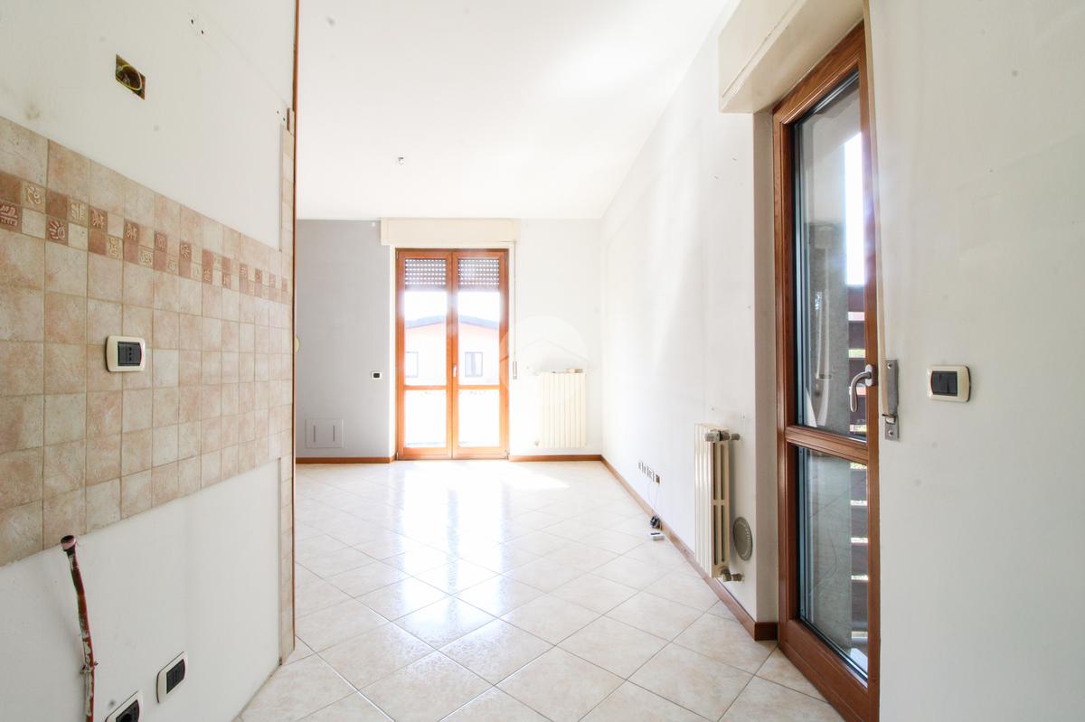 L'appartamento è composto da ingresso con ripostiglio in quota, luminoso soggiorno con balcone e con cucina a vista con balcone , camera matrimoniale, bagno finestrato con vasca. Completa la proprietà una cantina di pertinenza.