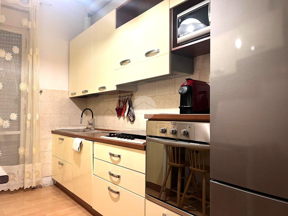 L'appartamento entrando, si accede a un ampio soggiorno, cucina abitabile con terrazzino, due camere da letto, bagno finestrato, ripostiglio. Il riscaldamento é centralizzato, predisposizione di area condizionata .